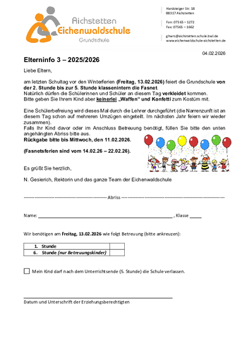 Aktuelle Informationen zum laufenden Schuljahr entnehmen Sie bitte den folgenden Dokumenten: